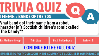 If you can answer "In which band features Brian May on guitar?" and maybe even "What band got their name from a robot character in a Scottish children's comic called.." there is a good chance that you're going to beat the average score of 7/10 in this trivia quiz