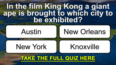 Look forward to questions like "In the film King Kong a giant ape is brought to which city to be exhibited?" and "In which region of France did the allied troops land on 'D-Day' in 1944?"