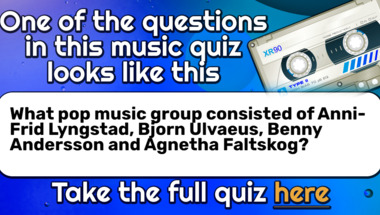 4/10 is what people on average are scoring in this trivia quiz so far. Are you ready to answer questions like "What pop music group consisted of Anni-Frid Lyngstad, Bjorn Ulvaeus, Benny Andersson .." and "What band was Ozzy Osbourne a member of before going solo?"