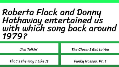 If you can answer "Donna Summer entertained us with which song back around 1977?" and maybe even "Roberta Flack and Donny Hathaway entertained us with which song back around 1979?" there is a good chance that you're going to beat the average score of 3/10 in this trivia quiz