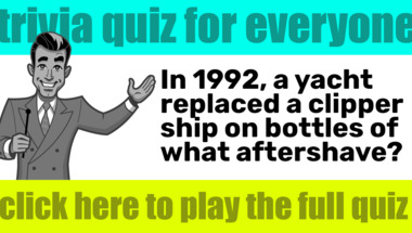 Look forward to questions like "Which bird can lose its last letter to turn it into a popular figure?" and "In 1992, a yacht replaced a clipper ship on bottles of what aftershave?"