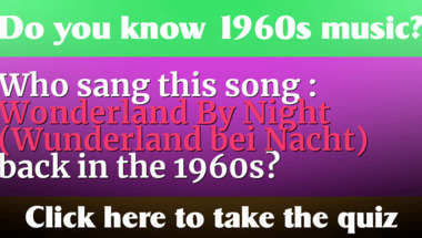 4/10 is the score to beat in this trivia quiz to put yourself over the average quiz taker. But you're probably going to be able to answer questions "Who sang this song : "I Get Around" back in the 1960s?" and "Who sang this song : "Wonderland By Night (Wunderland bei Nacht)" back in the 1960s?" easy!