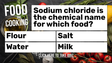 If you can answer "Sodium chloride is the chemical name for which food?" and maybe even "What cookery term means cutting vegetables into long, thin batons?" there is a good chance that you're going to beat the average score of 7/10 in this trivia quiz