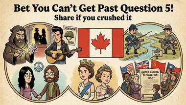 7/10 is what people on average are scoring in this History 29-03-2025 quiz so far. Are you ready to answer questions like "What nationality was Yoko Ono, who married John Lennon in 1969?" and "What type of leaf was on the new Canadian flag, unveiled in 1965?"